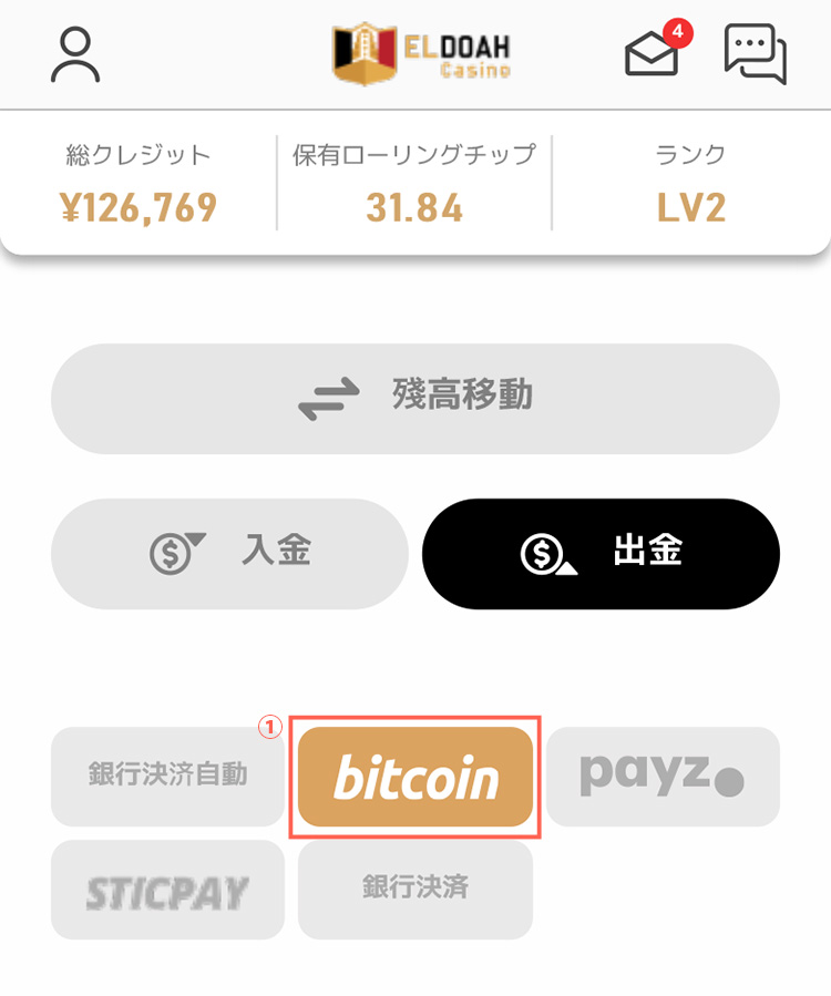 真ん中の「出金」をクリックしてください。