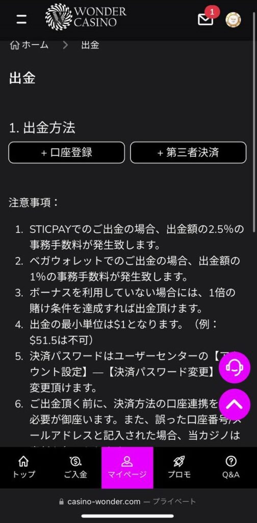 ワンダーカジノから仮想通貨で出金する方法