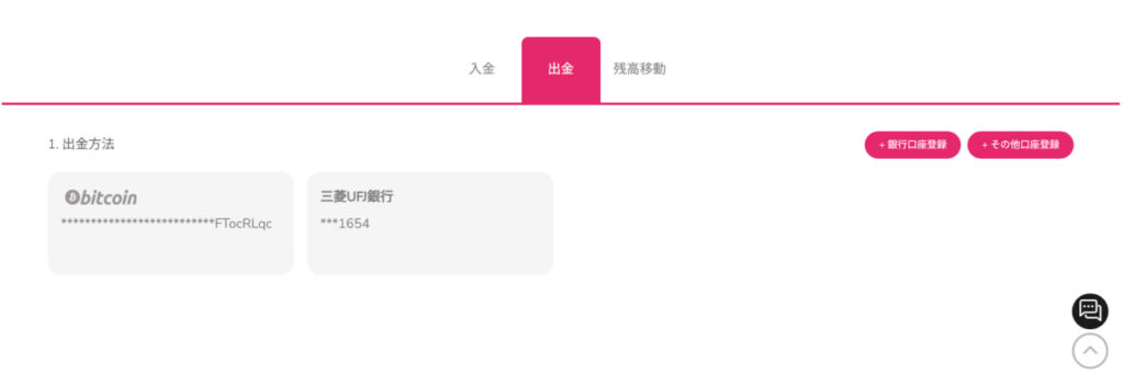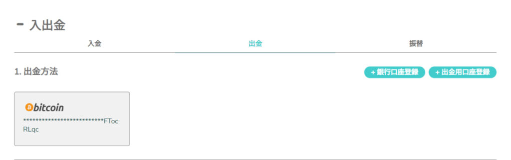 「+出金用口座登録」をクリックしてください。